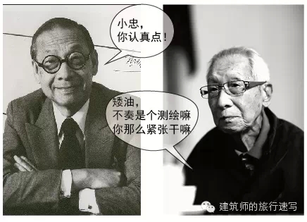 馮紀忠畢業(yè)于上海圣約翰大學,與貝聿銘是同學。老貝很認真,老馮卻很搞怪。測繪時,他調皮搗蛋故意把桿子傾斜,這讓貝聿銘抓狂。